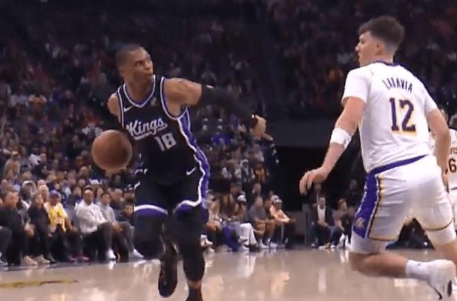 周日晚,國王與湖人迎來賽季首次交鋒,兩隊此前均以1勝1負開局。此役威少依舊以替補身份出戰(zhàn),卻全程保持火熱狀態(tài),成為國王咬住比分的關(guān)鍵。這位37歲老將(11月將滿37歲)在27分鐘內(nèi)交出18分6助攻6籃板的全面數(shù)據(jù),三分球更是6投4中,效率極高。即便已征戰(zhàn)NBA第18個賽季,威少仍沒丟掉標志性的“熱血本色”——第二節(jié)的一個快攻回合,他給球迷留下了極具個人風格的經(jīng)典瞬間。